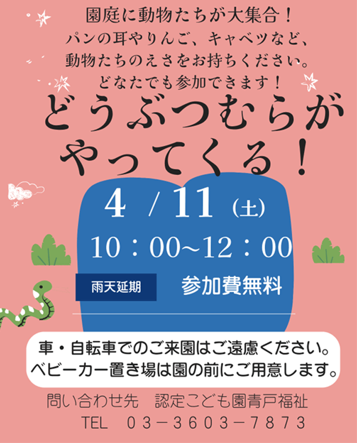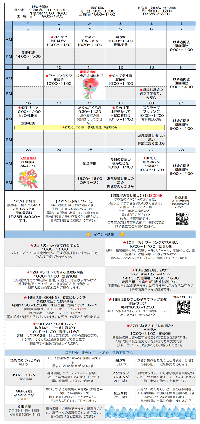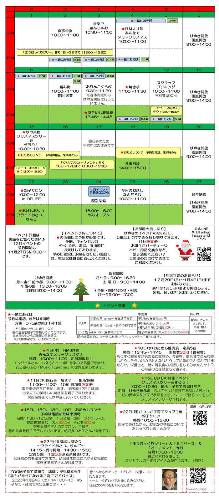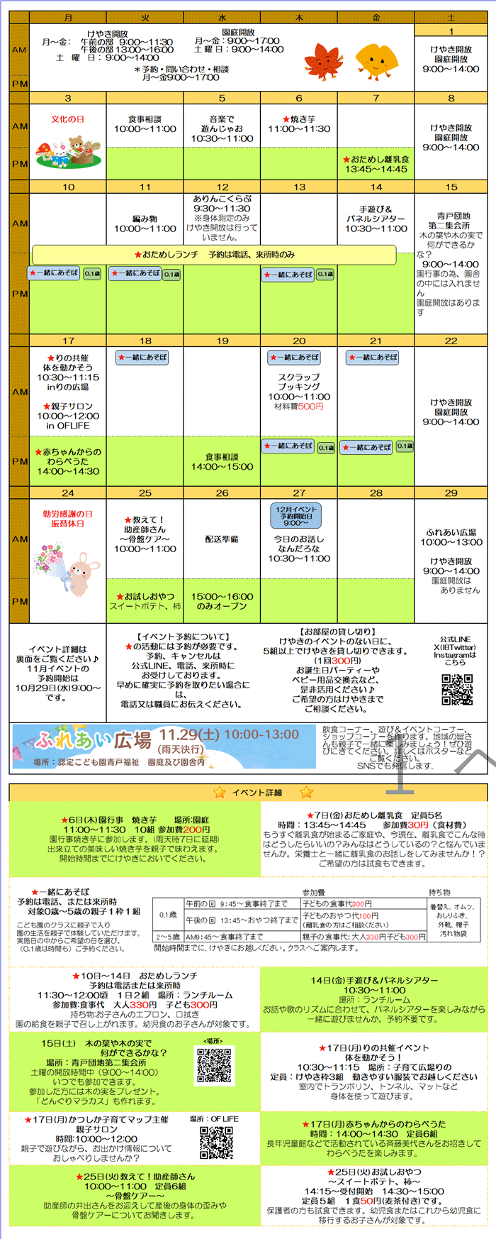 焼き芋やチャカタンなど、認定こども園で行っている季節の行事などに参加できます。 在園児と一緒に、みんなで楽しいひとときを過ごしませんか? |