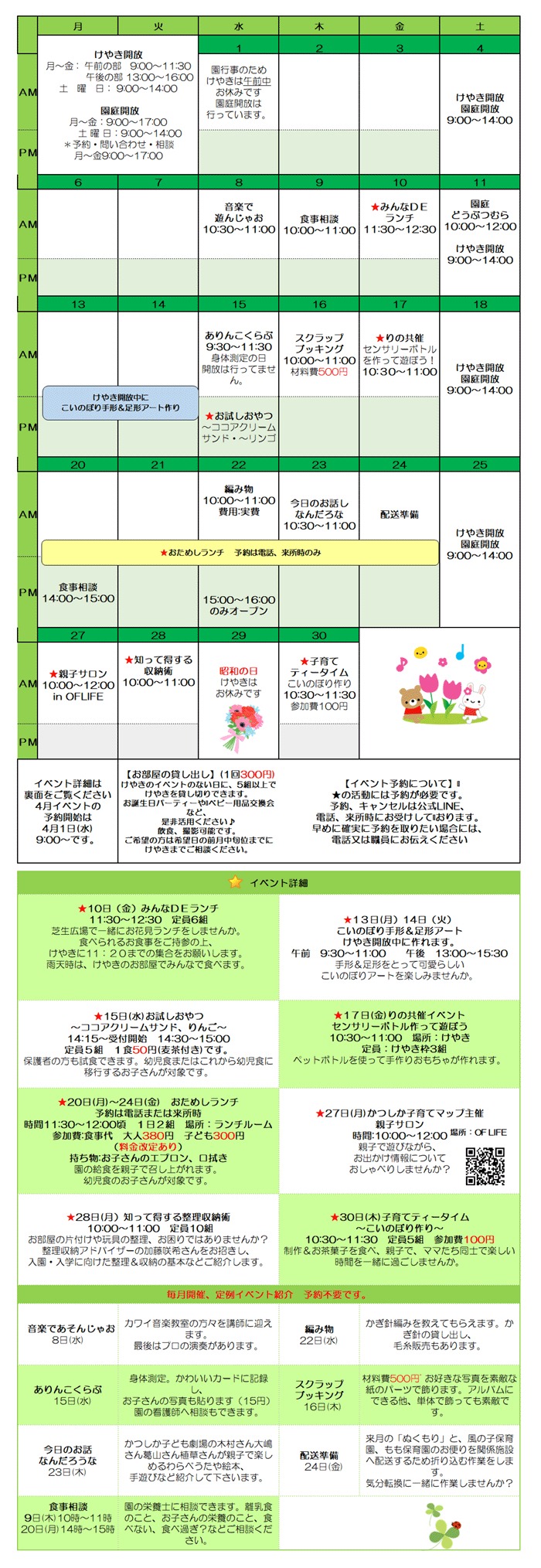 午前9:30~昼食終了・予約制・食事代300円